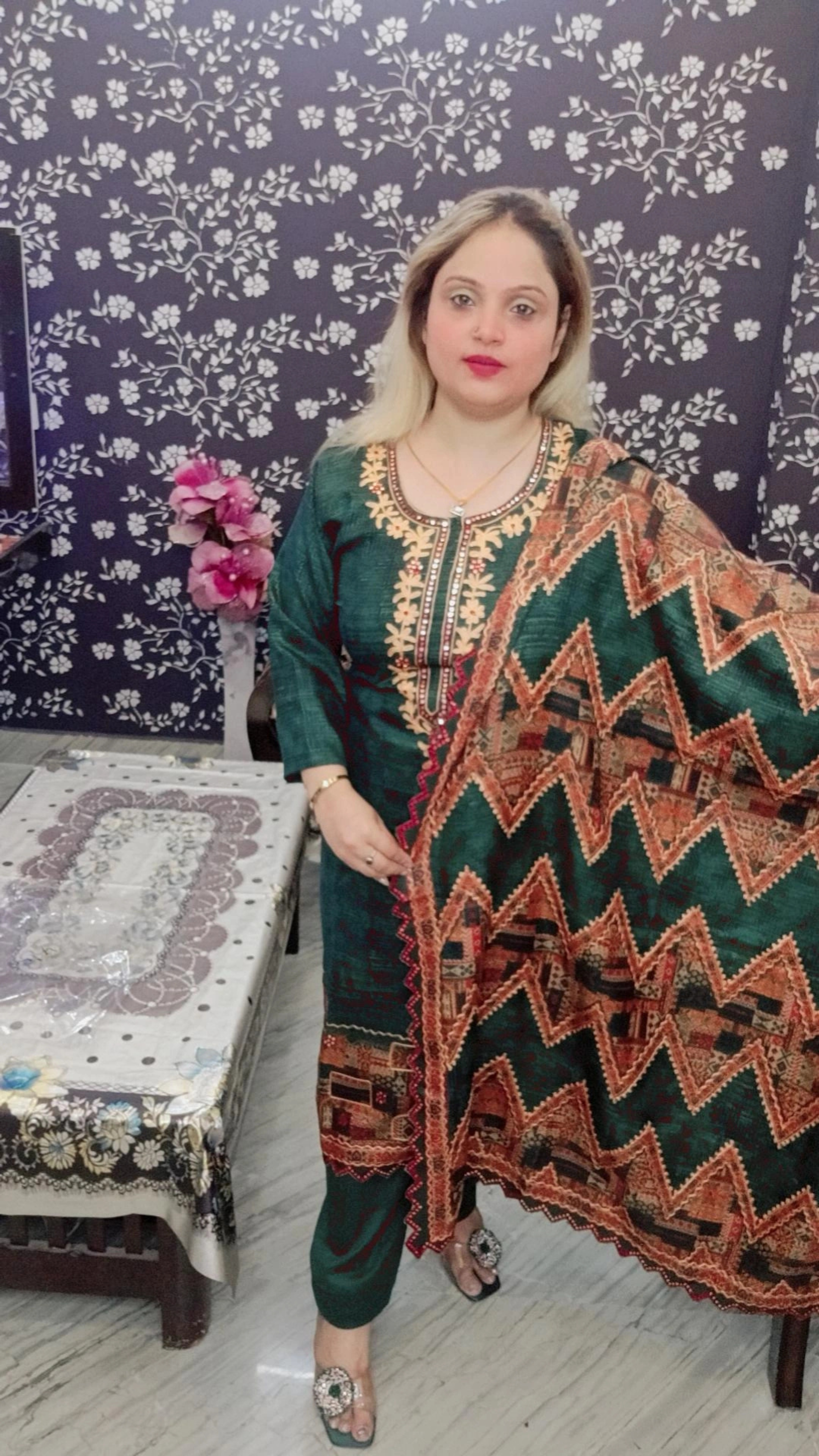 Crape Suit with Digital Print & Mirror Work | Stylish Suit with Dupatta