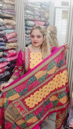 Chinnon Suit with Pants and Printed Dupatta