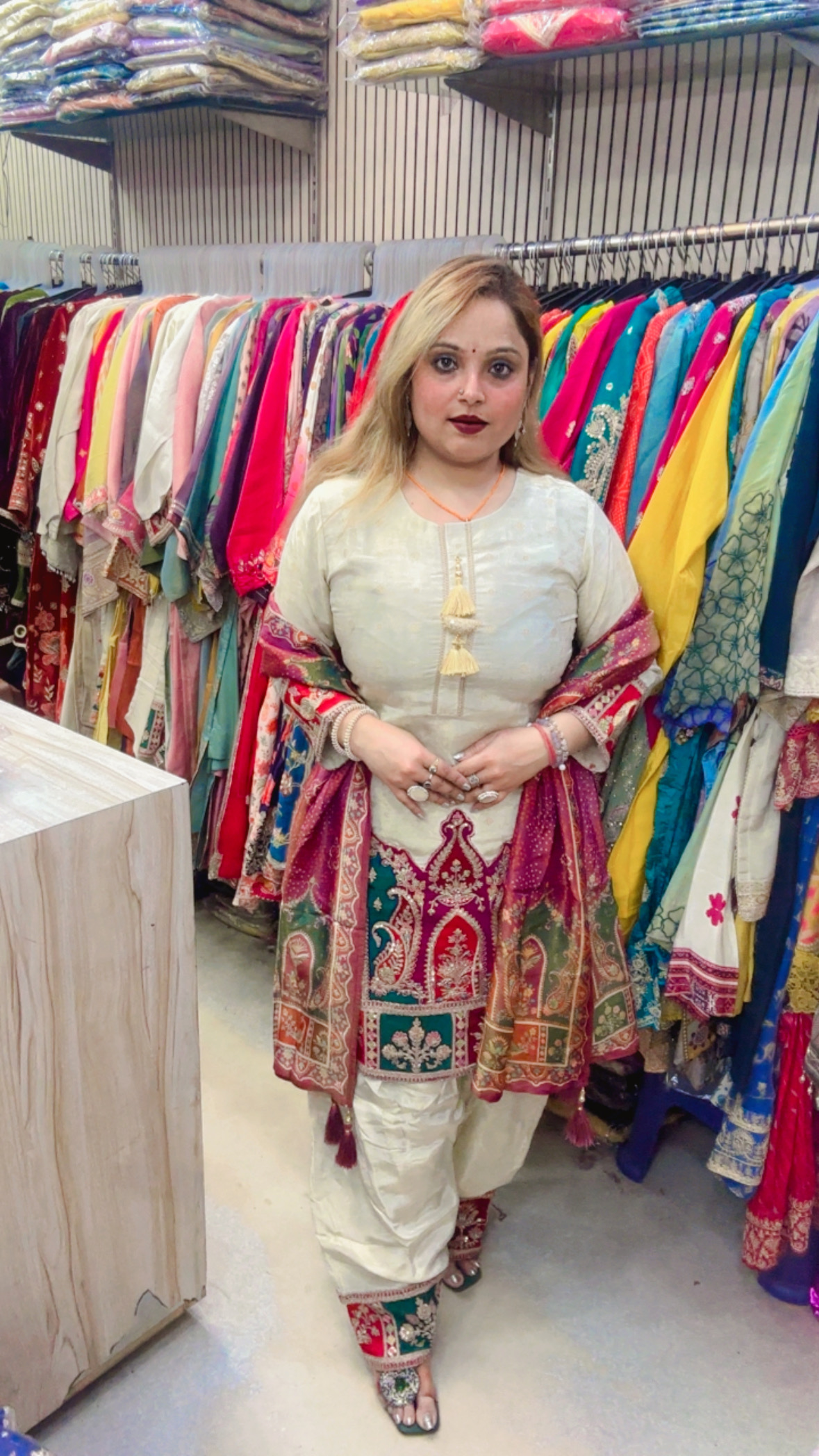Be the first to review “Chinon Farshi Salwar Suit with Rajwadi Design & Dupatta”