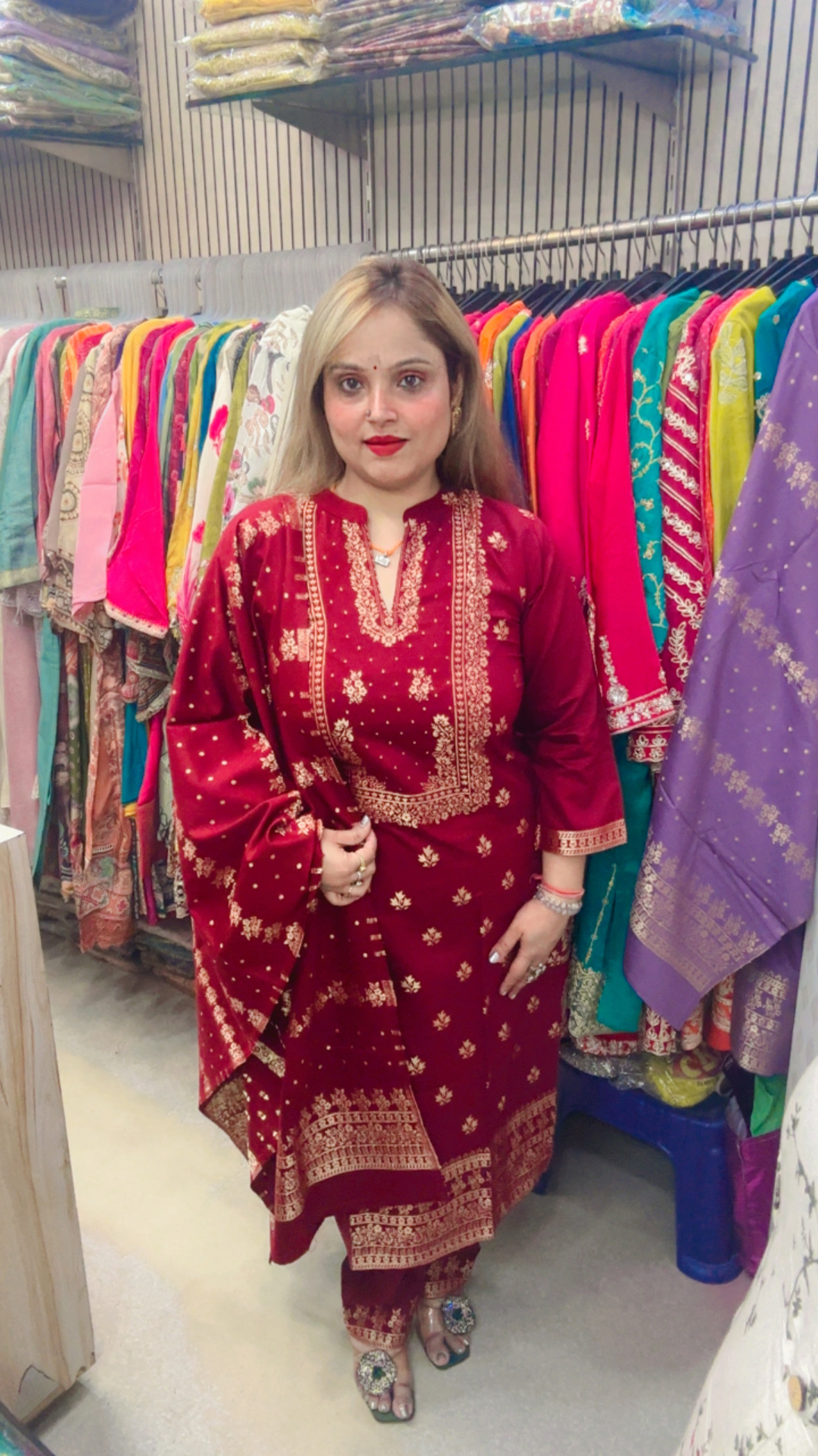 Elegant Pashmina Pant Suit with Golden Print & Dupatta