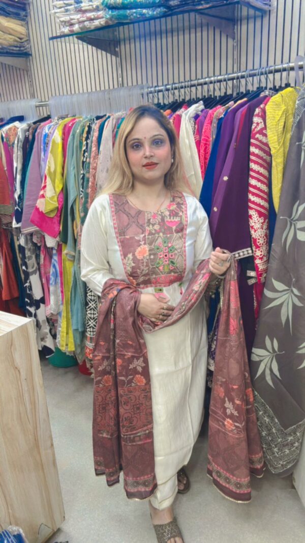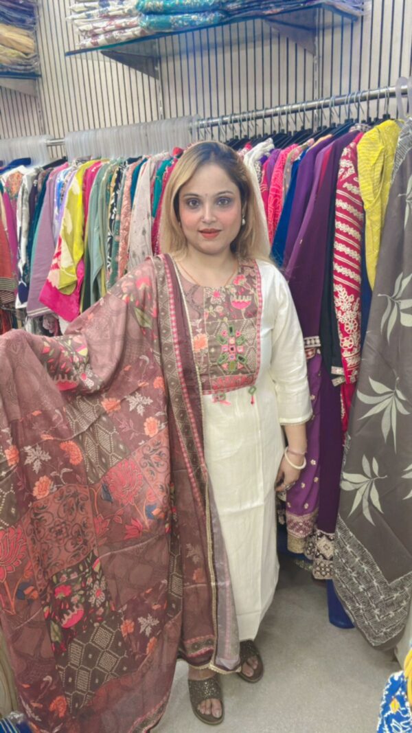 Step into sophistication with our Roman Silk Straight Kurti Suit, a beautiful blend of traditional charm and modern elegance. Crafted from premium Roman silk fabric, this kurti suit offers a rich texture, subtle sheen, and unmatched comfort — perfect for festive occasions, formal gatherings, or everyday luxury.