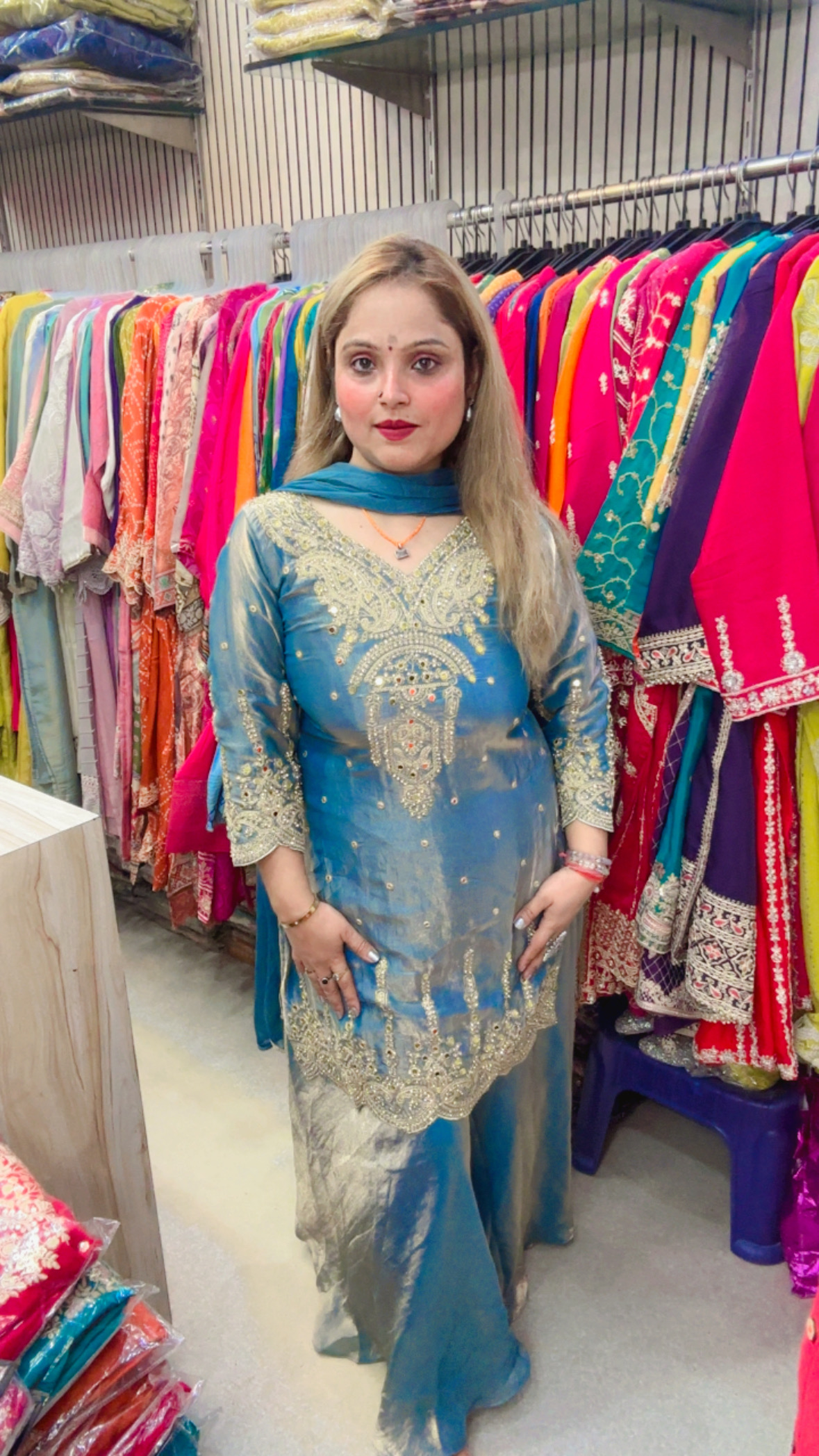 Features intricate heavy embroidery, adding richness and festive appeal.