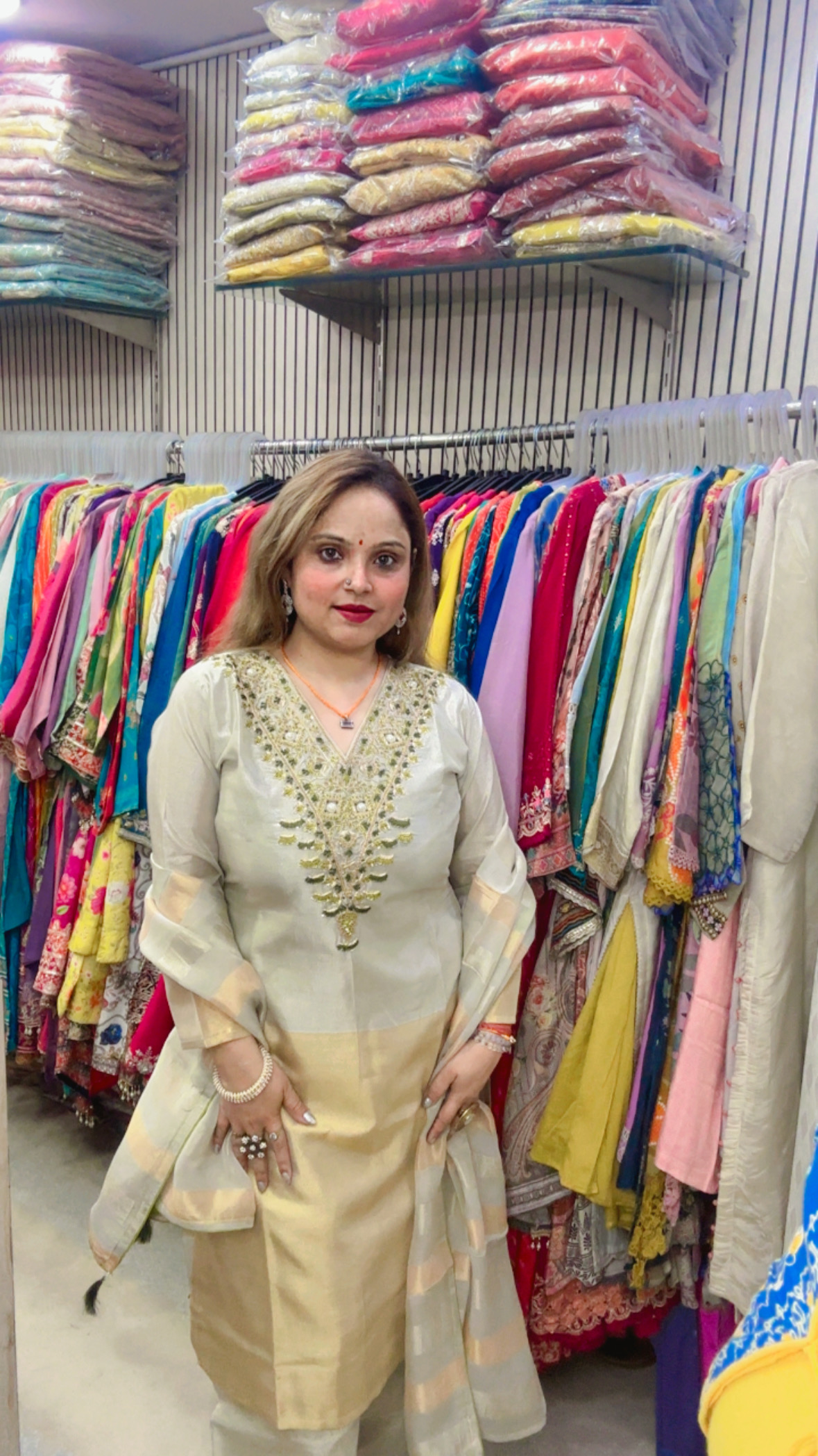 Kanjivaram Silk Shimmer Farshi Salwar Suit with Heavy Work & Dupatta