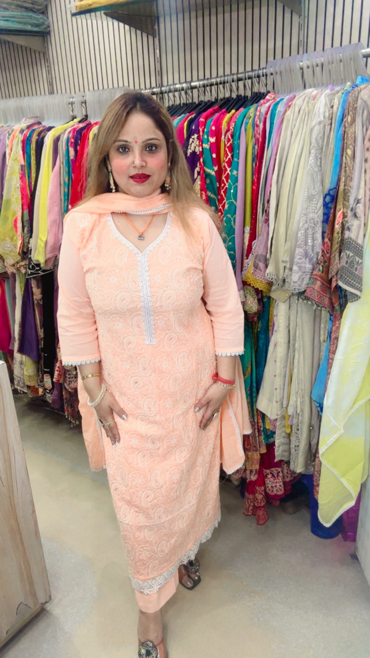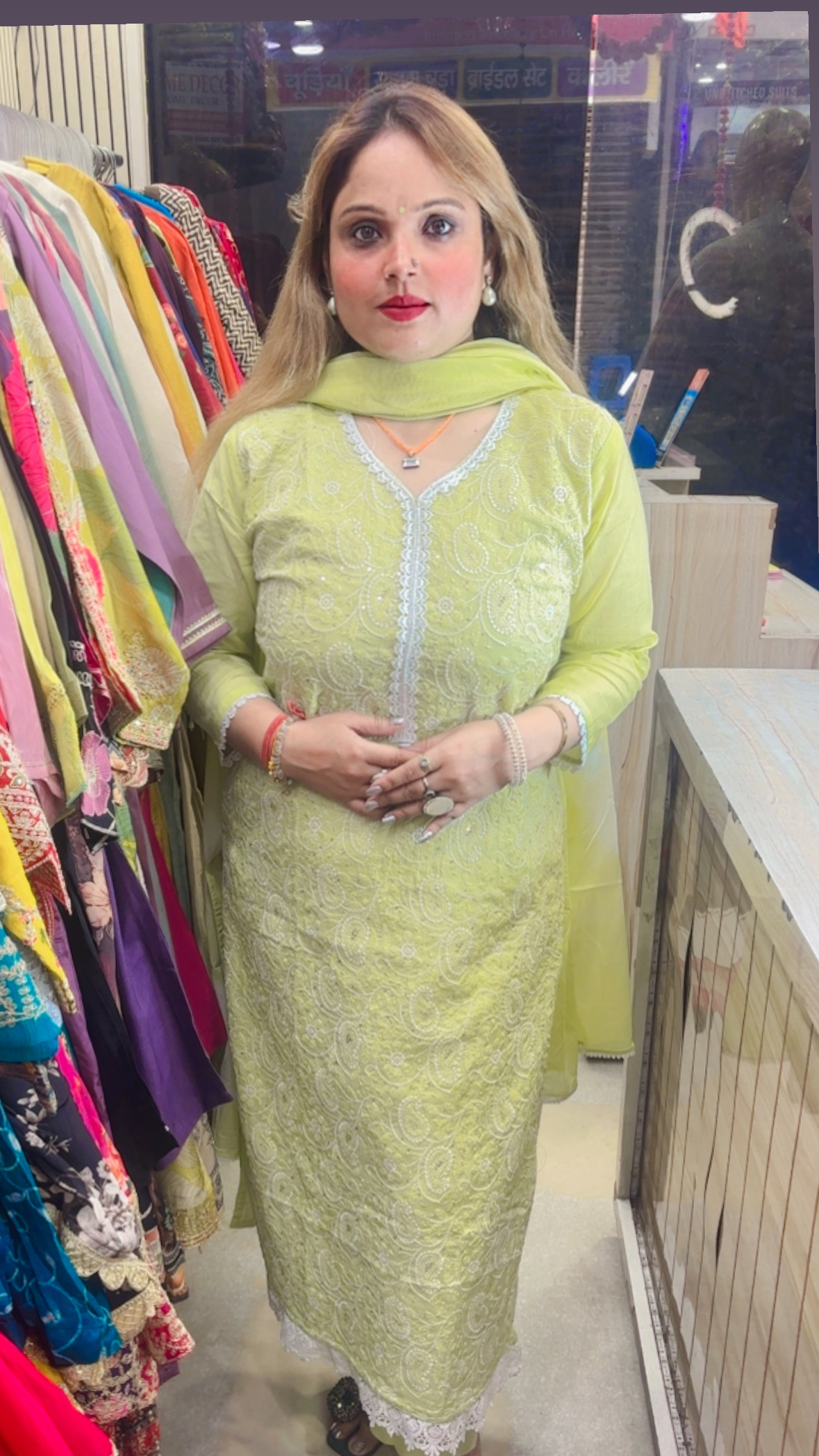 Mul Cotton Pant Suit with Heavy Work & Dupatta