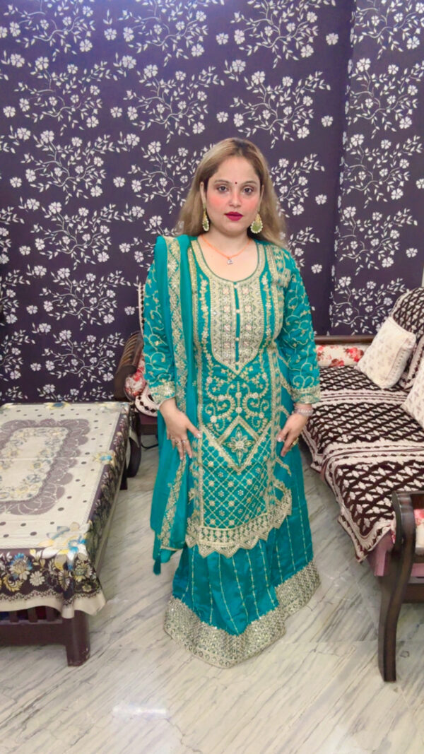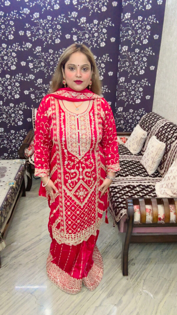 Premium Chinon Sharara Suit – Heavy Work with Dupatta