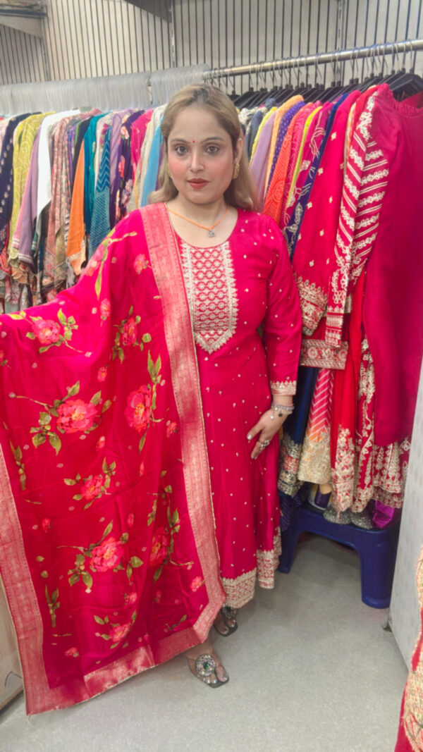 Pure Chinon Anarkali Suit – Elegant Embroidery & Dola Silk Digital Print Dupatta