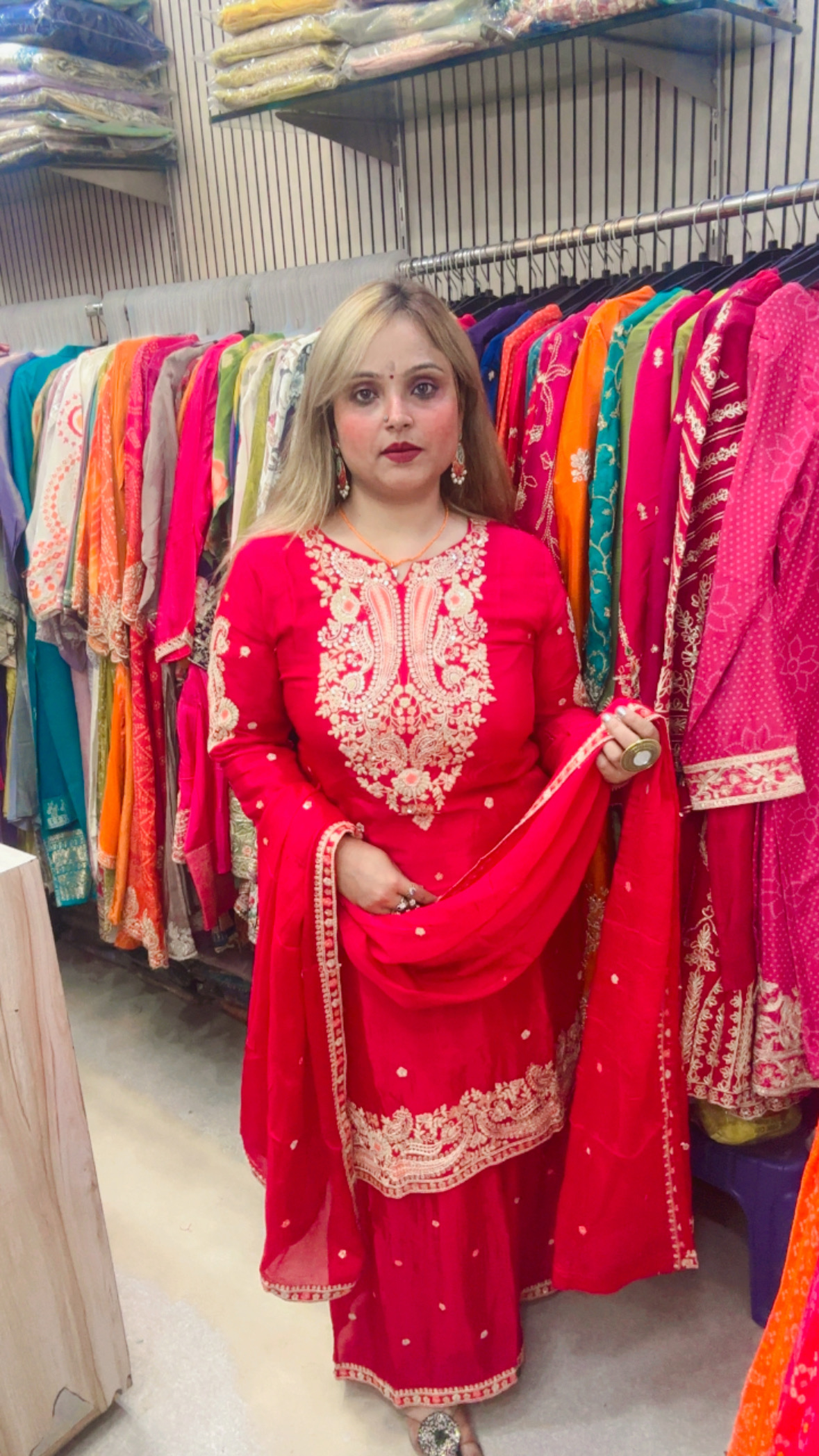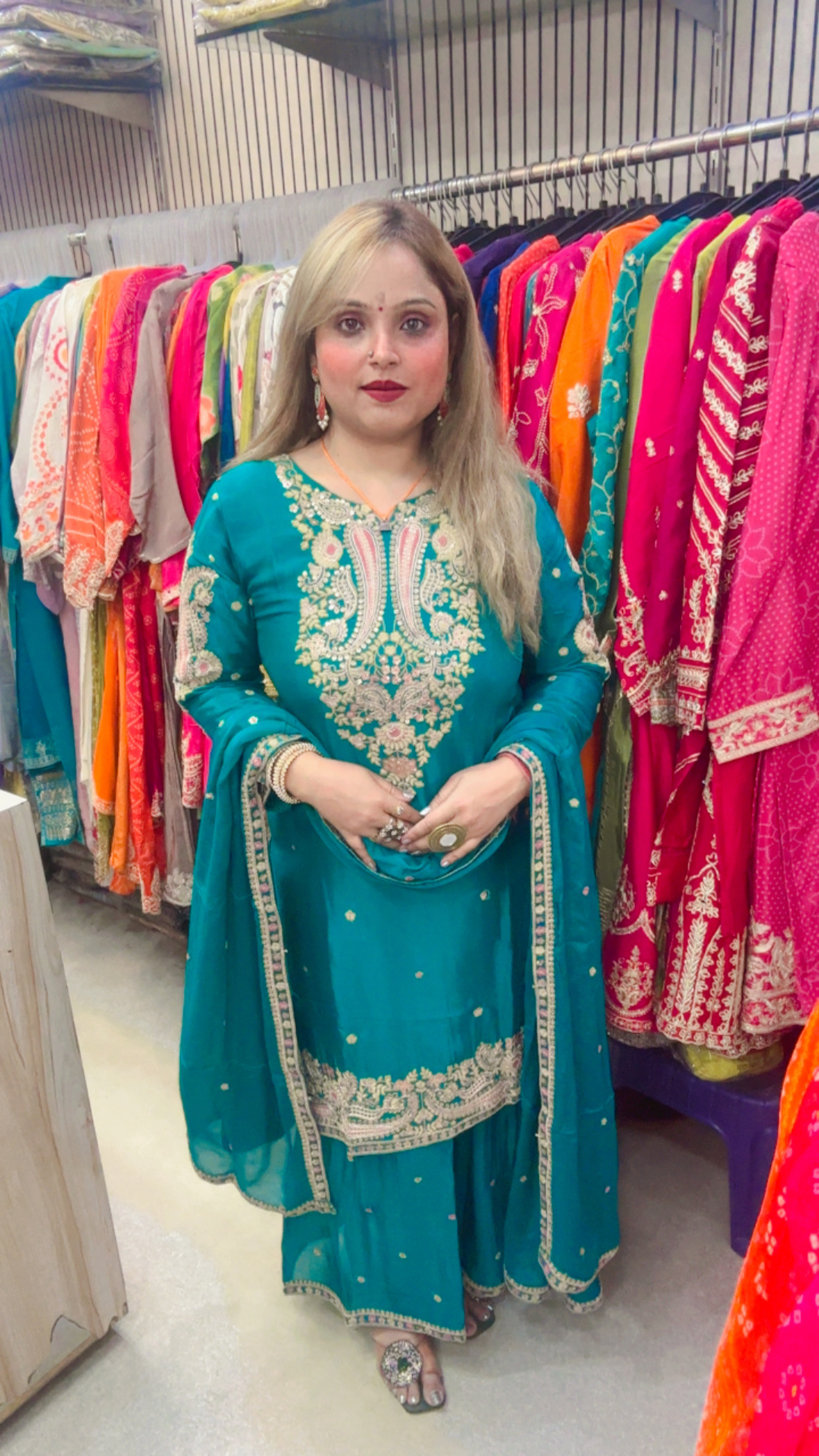 • Features intricate heavy work, adding a rich and festive appeal.