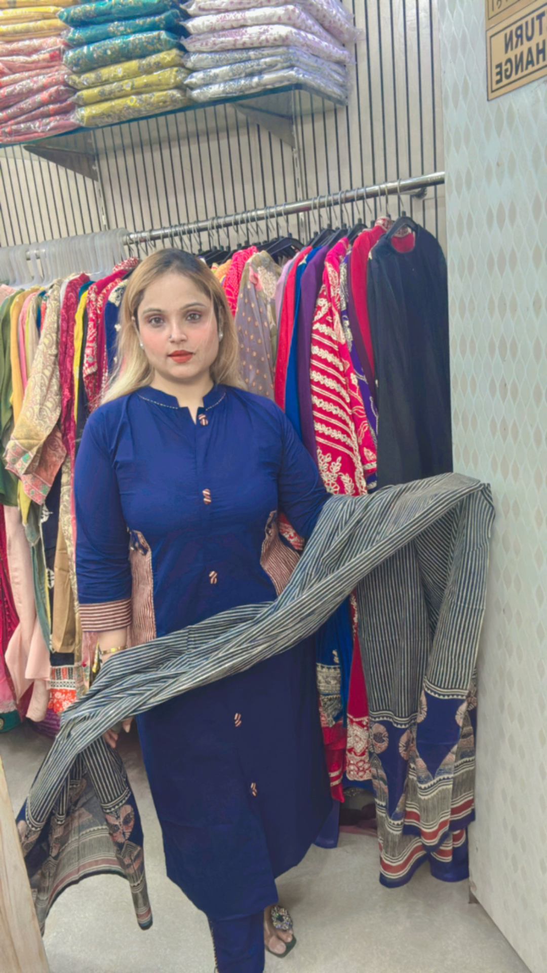 Pure Cotton Co-ord Set Pant Suit with Dupatta & Pocket Detail