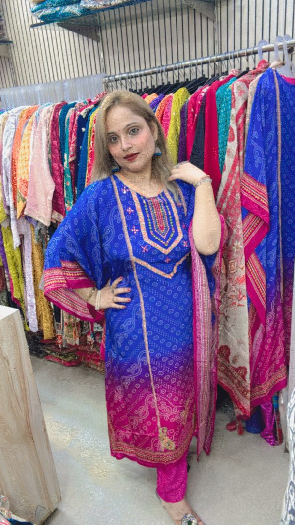 Embrace chic comfort with this digitally printed crape kaftaan set — where style meets sophistication. ✨