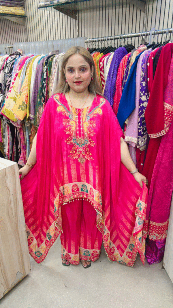 Add a touch of boho-luxe charm to your wardrobe with this digitally printed Crape Kaftaan set – where comfort meets couture. ✨