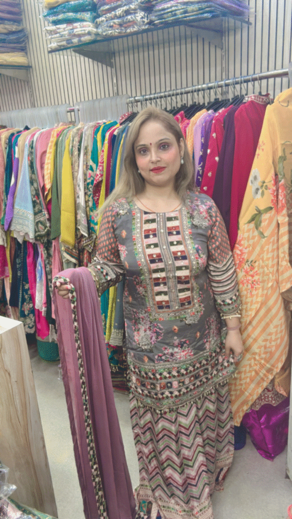 Make a bold ethnic statement with this digitally printed Sharara suit — where tradition meets trend.
