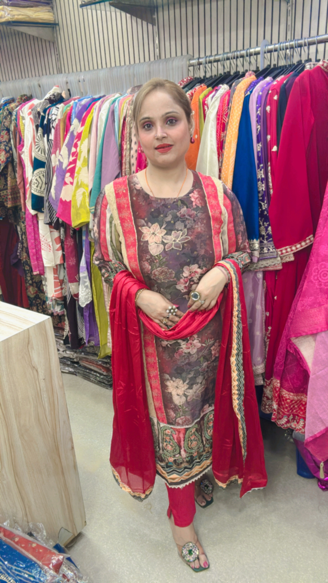 Make a style statement with this digitally printed pure crape suit set – perfect for the woman who loves comfort and class. 🌺