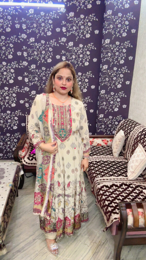 Pure Crepe Anarkali Suit – Mirror Work with Digital Print Dupatta
