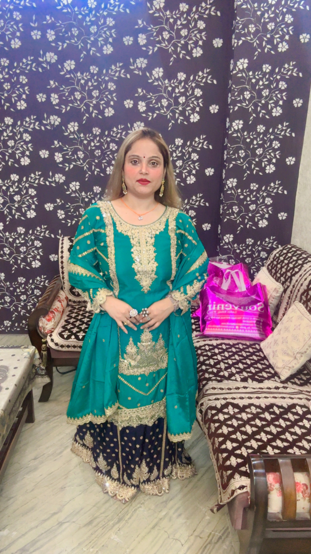 Step into graceful sophistication with this Designer Crepe Skirt Suit, a perfect blend of tradition and contemporary fashion.