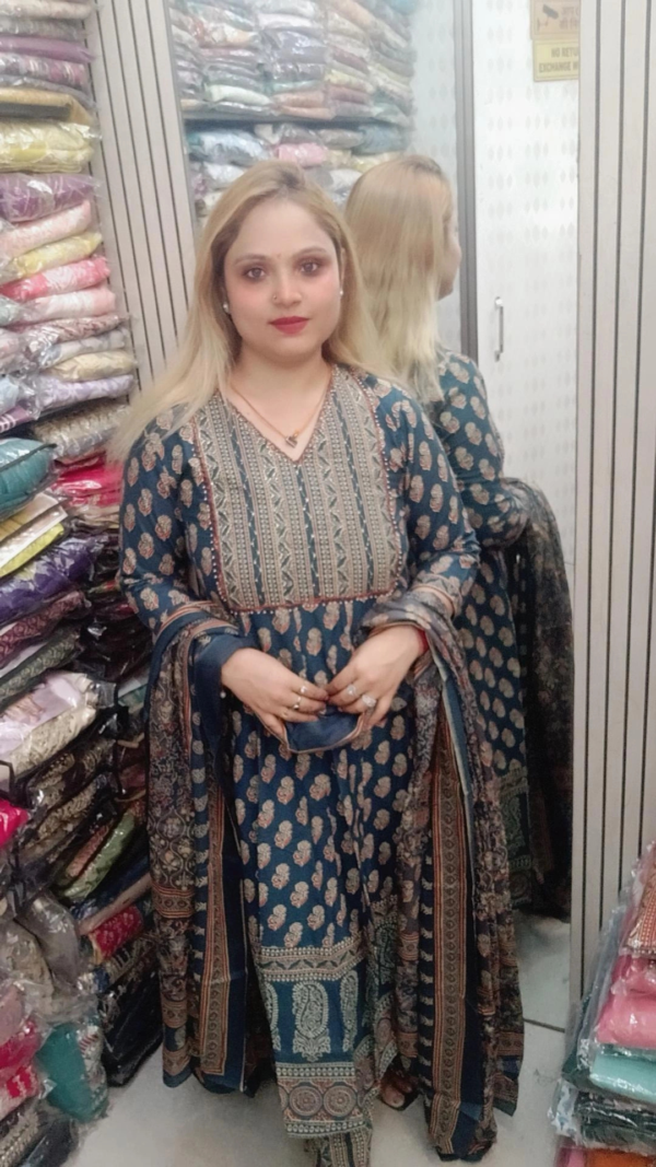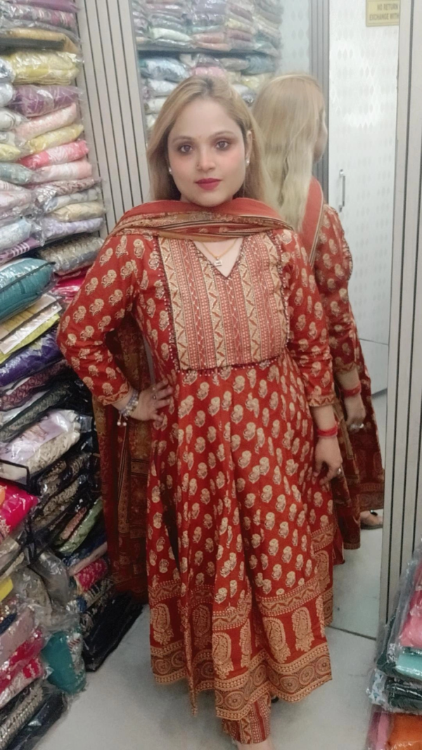 Embrace timeless elegance with this beautifully handcrafted Kalamkari Anarkali suit! ✨