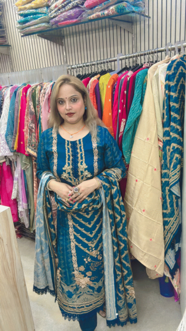 Elevate your wardrobe with this chic muslin pant set that blends comfort with contemporary ethnic style.