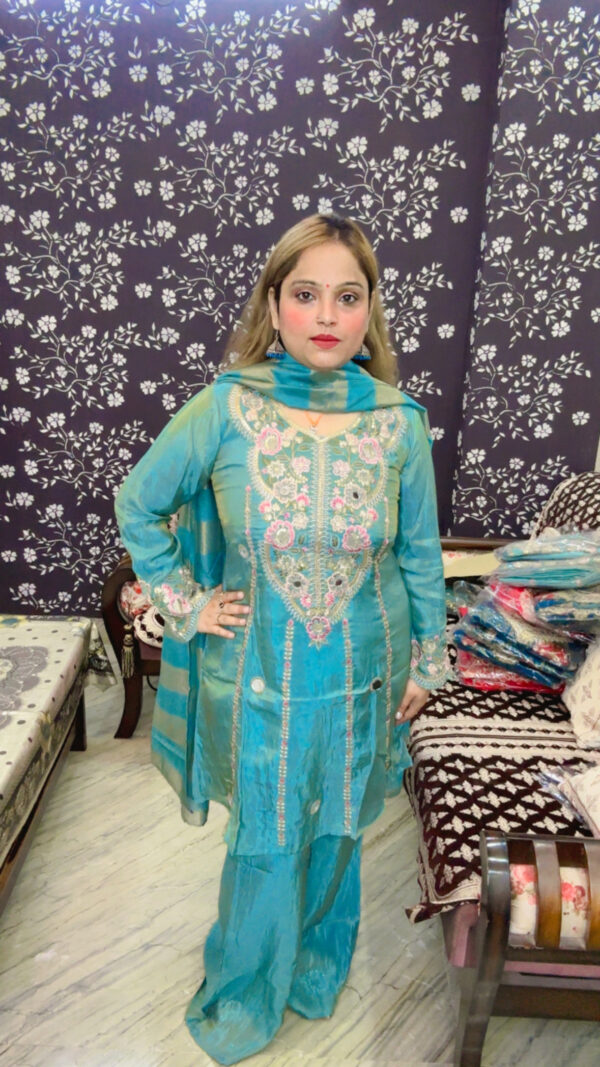 Pure Shimmer Silk Co-Ord Set – Full Sleeves, Heavy Work with Dupatta