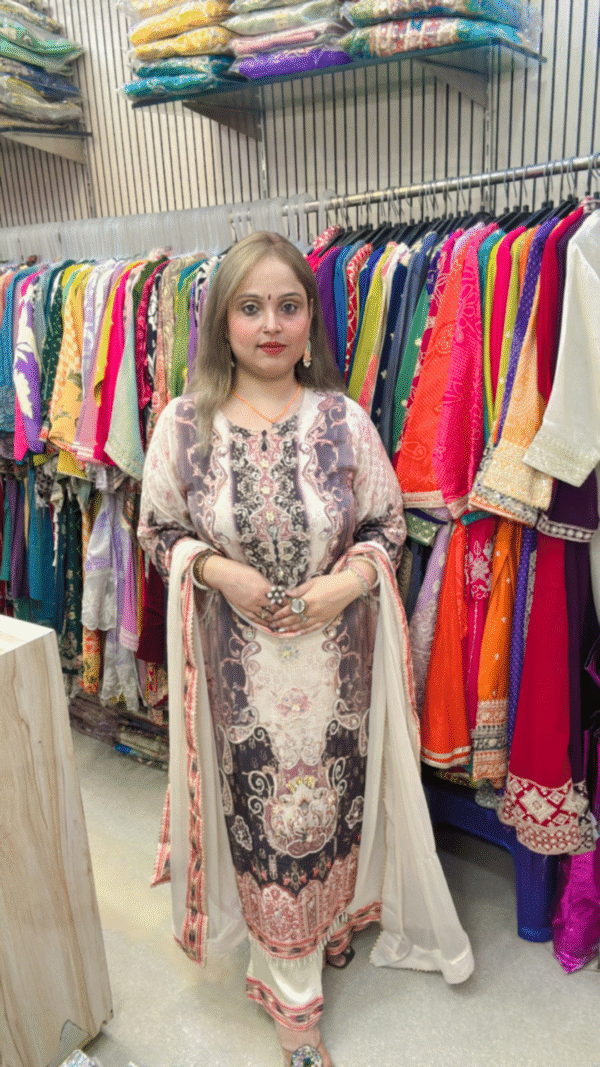 Stylish Pure Crape Pant Suit – Digital Print with Dupatta
