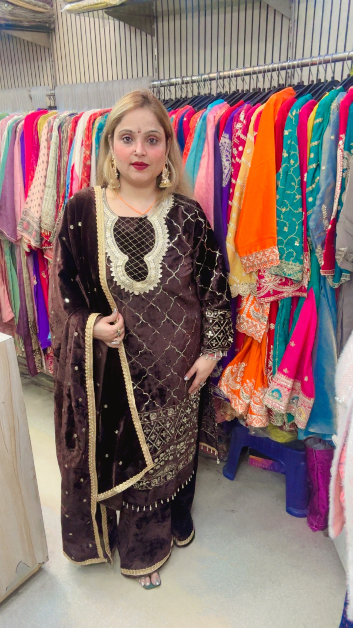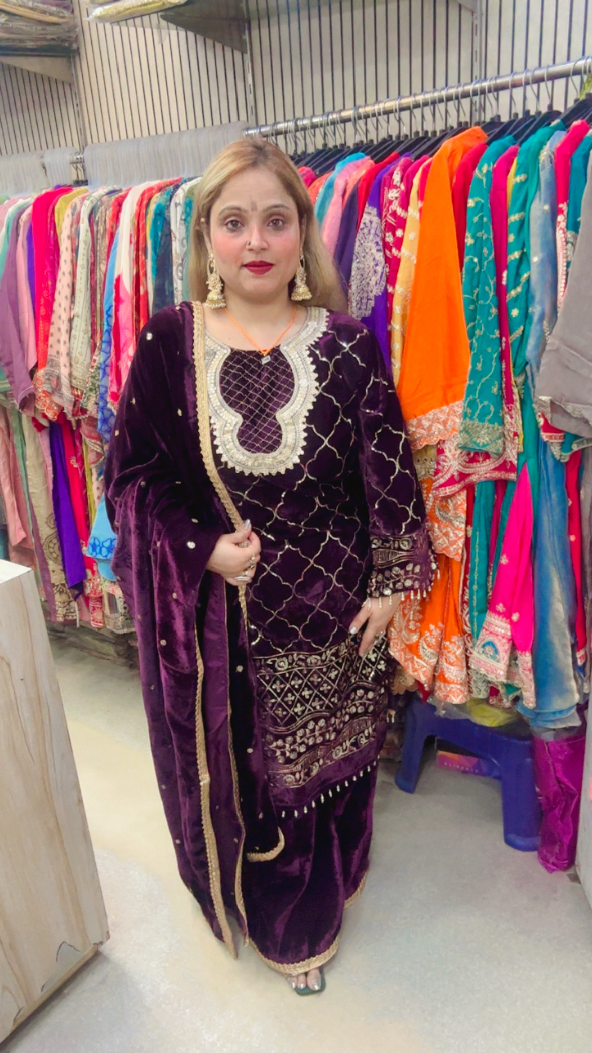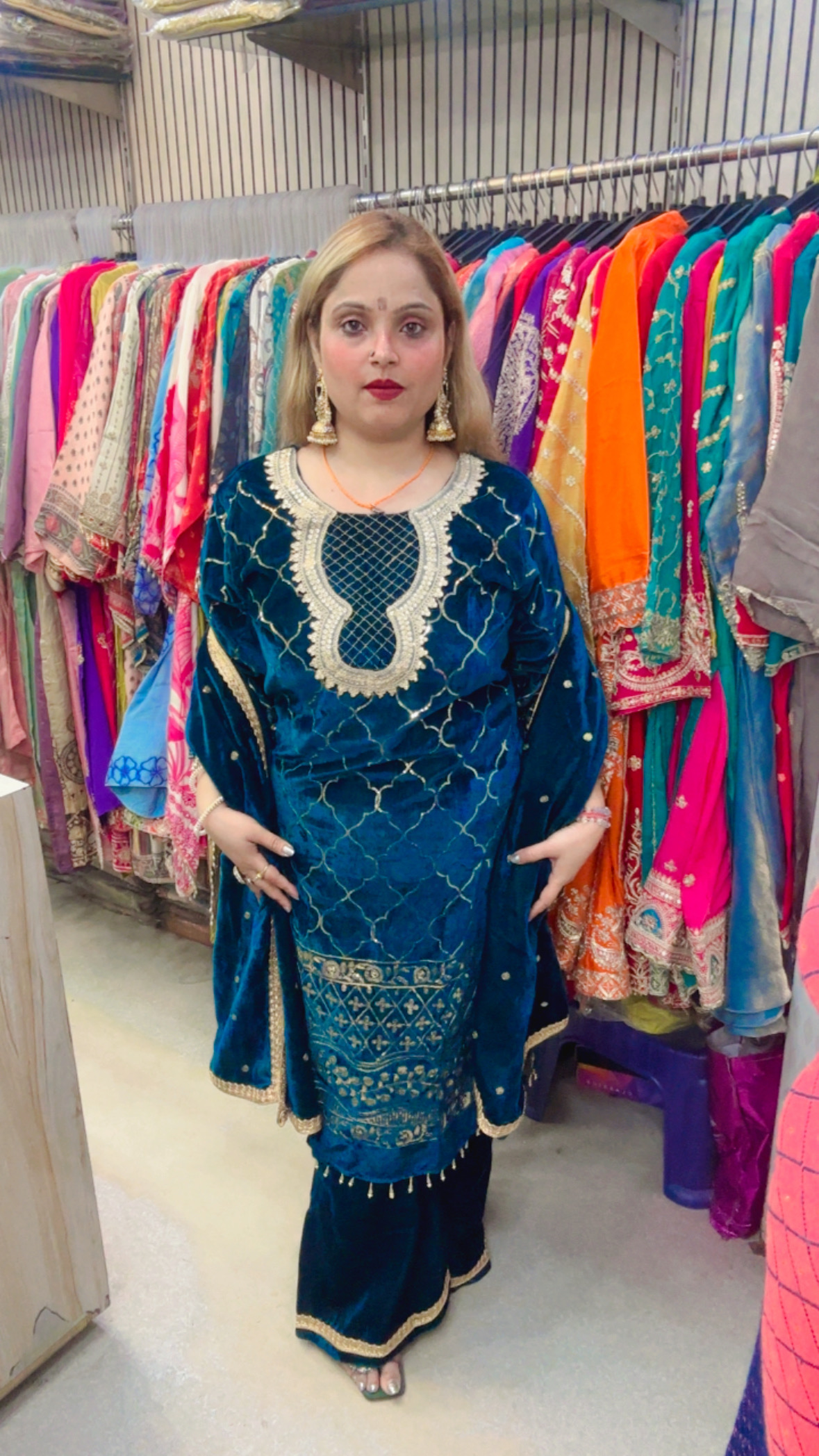 Velvet Palazzo Suit with Heavy Work & Dupatta